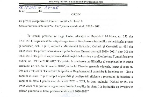 Noutăți 20 mai 2020 Anunț cu privire la înscrierea copiilor în clasa I (anul de studii 2020-2021) Conform ordinului MECC al R.Moldova nr. 438 din 08.05.2020 ”Cu privire la înscrierea copiilor în… Magdalena
